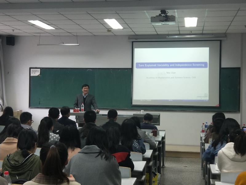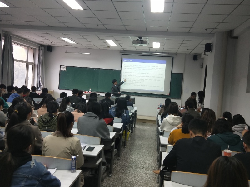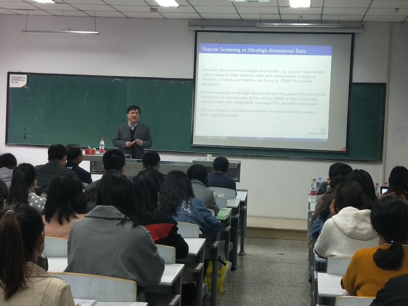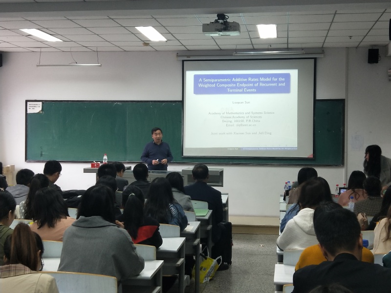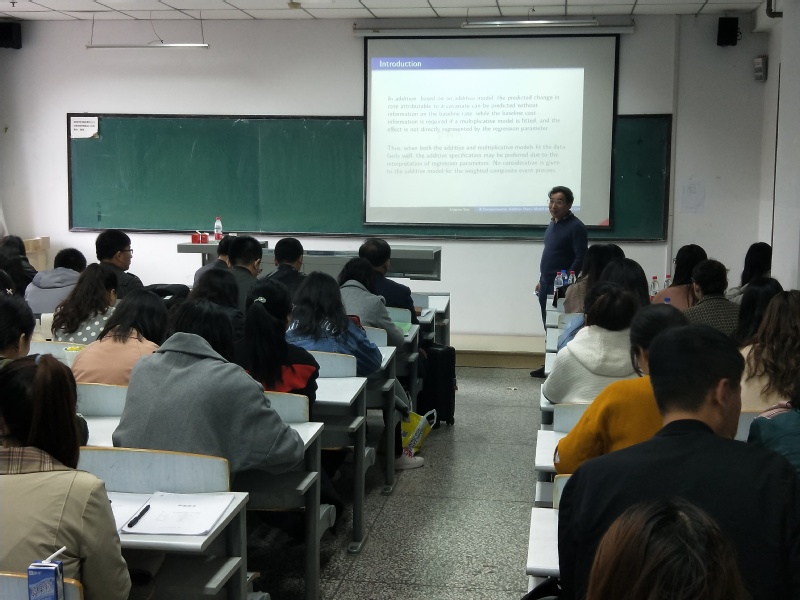 报告会上,孙六全教授介绍了删失数据的研究背景、研究方法、国内外研究动态、建模的方法与估计方法,分享了他近些年以来带学生情况以及部分研究成果。告诉同学们本专业发展前景广阔,市场需要大量的统计学人才,一定要要好好好好学习,刻苦专研。孙老师的报告语言风趣幽默、内容通俗易懂,报告会现场气氛活跃,博得了在场人员的阵阵掌声。