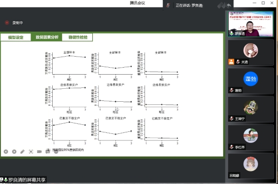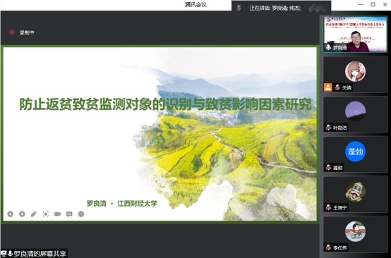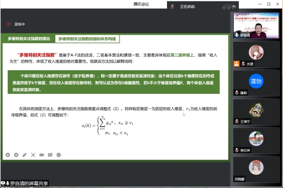 会后,罗良清教授与参会师生进行互动,气氛活跃,热情高涨。本次线上报告会有助于全体数统学院师生深入了解“防止返贫致贫”背景下统计学发挥的作用,此次专题讲座内容丰富,紧跟时代步伐,有利于以习近平新时代中国特色社会主义思想为指导,培养经济学基础深厚、创新能力突出、引领文明进步的数学与统计领军人才和未来大师。