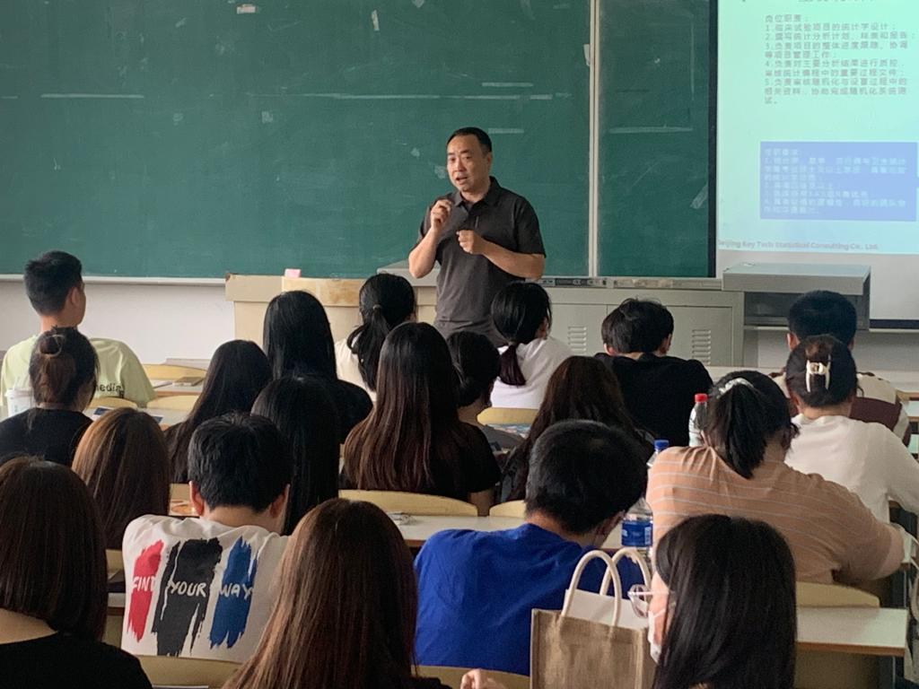 的同学们进行深入地沟通,通过讲述自身的经历,向同学们介绍统计学这门学科在现代社会发展以及于自己本身的职业追求的重要性,康总用幽默风趣的语言告诉同学们要多增进自己的认知和知识水平。