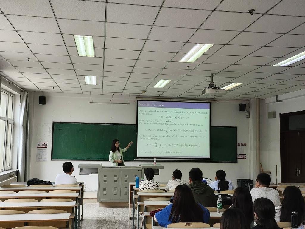 统计系主任杨凯、统计系党支部书记袁晓惠、统计系副主任王淑影、学院部分老师和研究生参加了本次报告会,报告由统计系副主任王淑影老师主持。