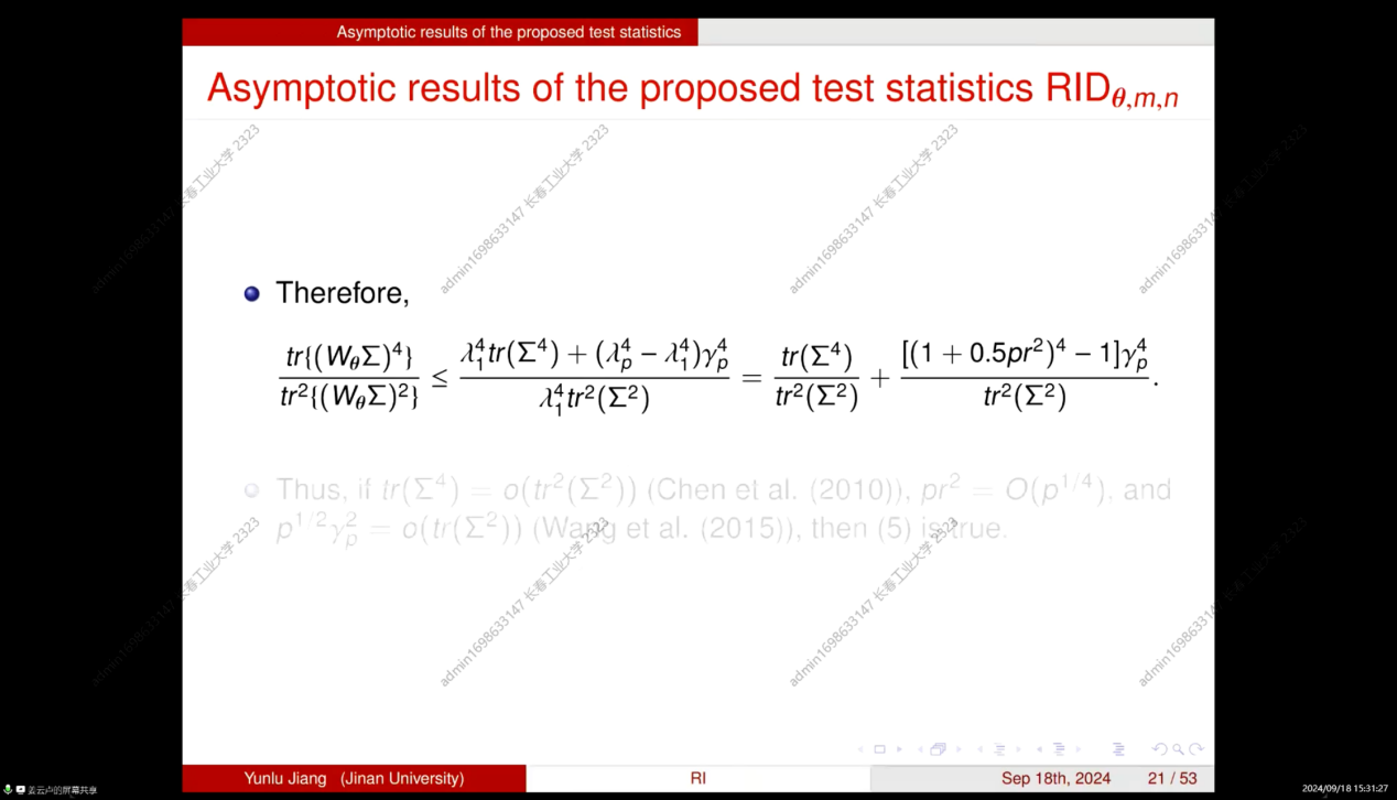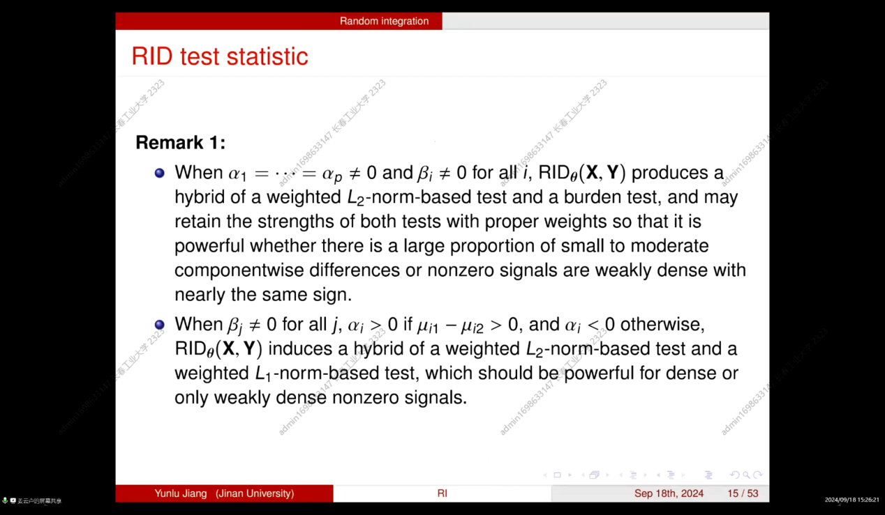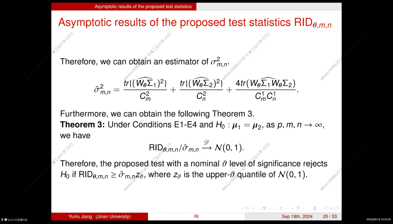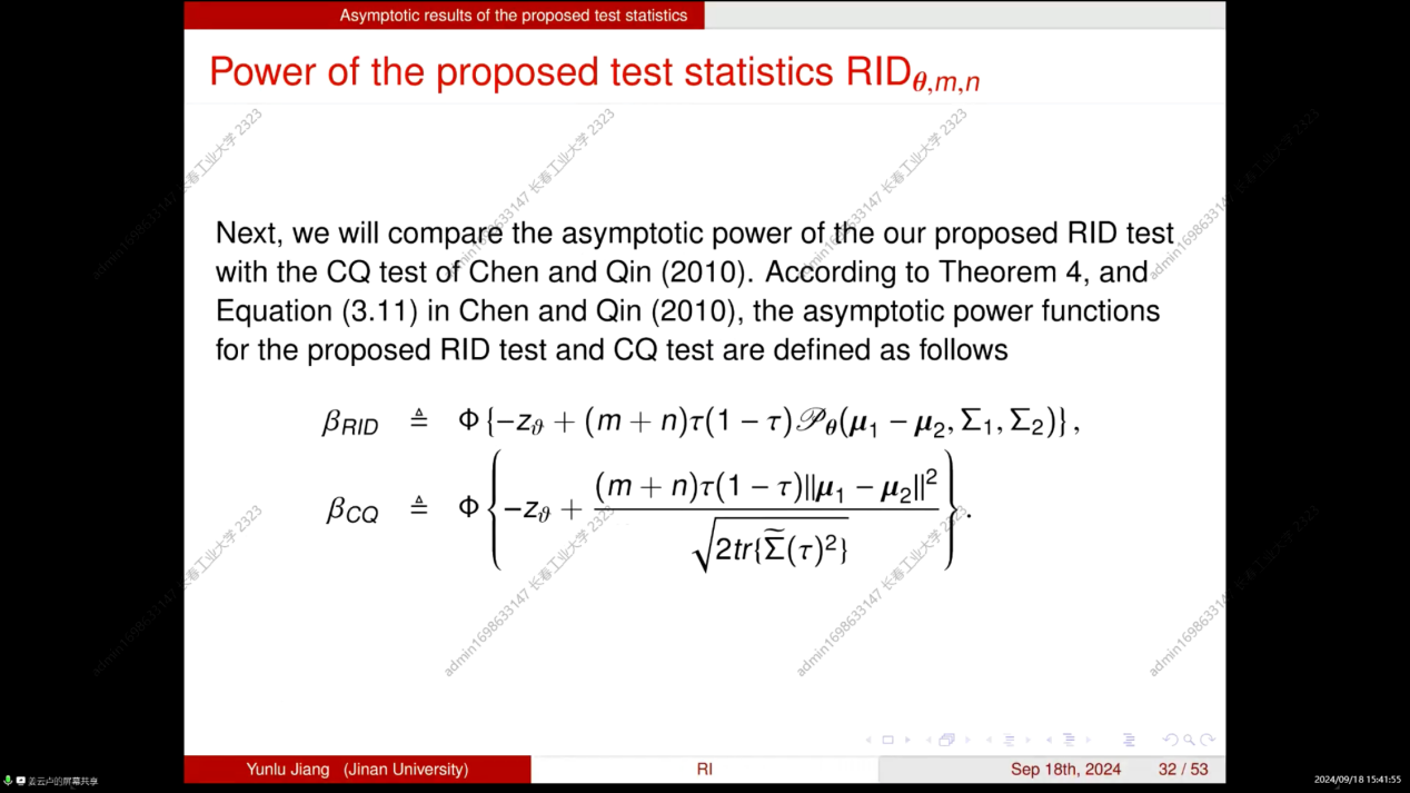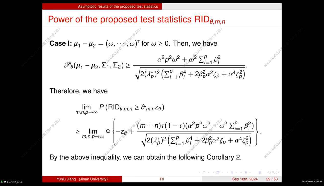 本次学术交流会拓展了同学们的学术视野,也激发了同学们的学习热情,更加努力学习研究新的领域与方法,并使老师和同学们对随机积分的高维均值向量的非参数双样本检验有了更深的理解,聆听报告的师生均表示受益匪浅。