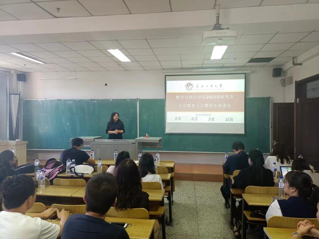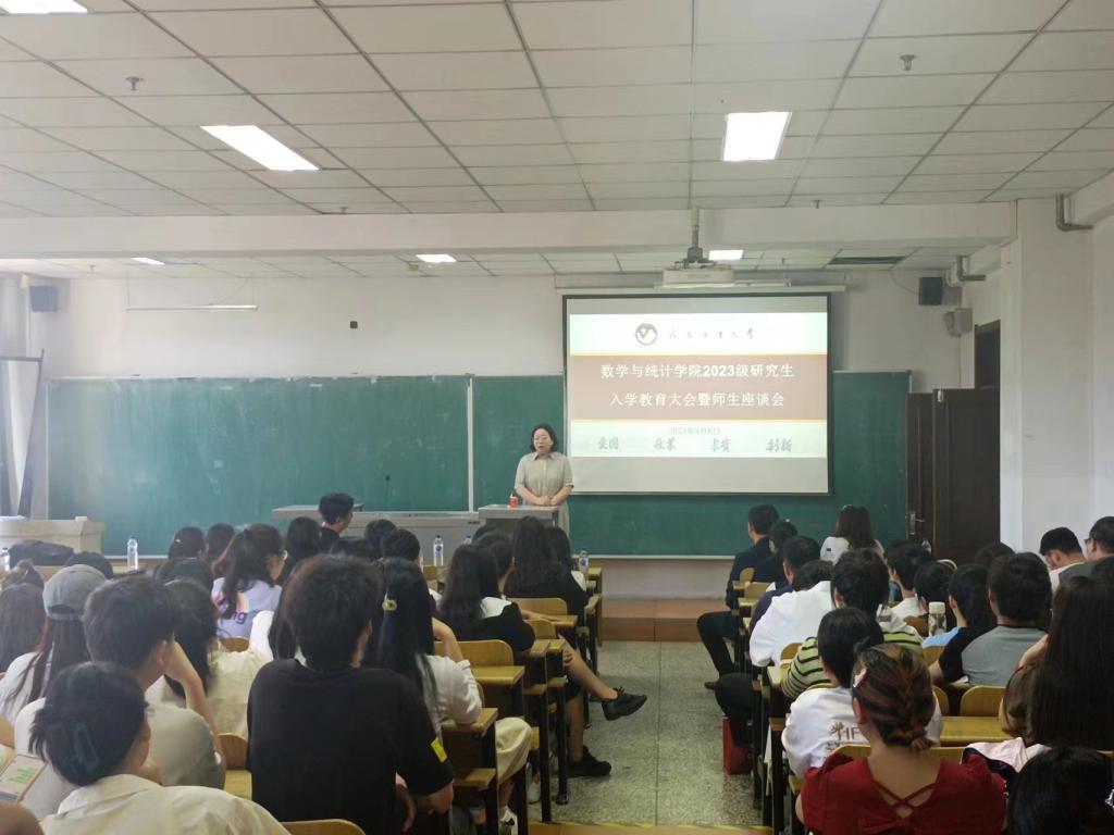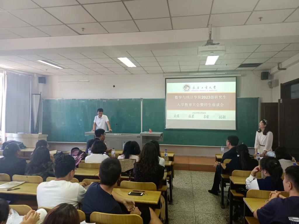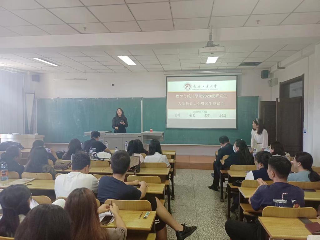 大会伊始,应艳老师介绍了出席本次大会的领导和老师,并对2023级全体研究生表示热烈欢迎。学院副院长兼统计系主任杨凯老师和数学系主任杜润梅老师就学院发展历程、师资队伍和学科概况进行了介绍,两位老师详细介绍了学院学科的研究方向以及在学术科研过程中需要注意的问题。