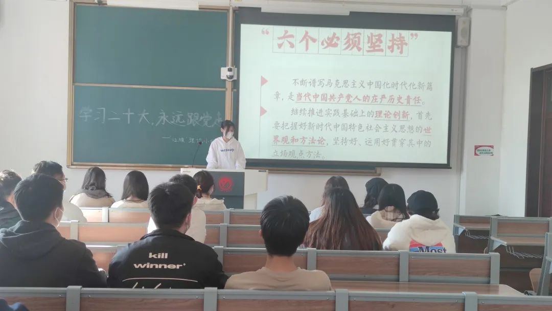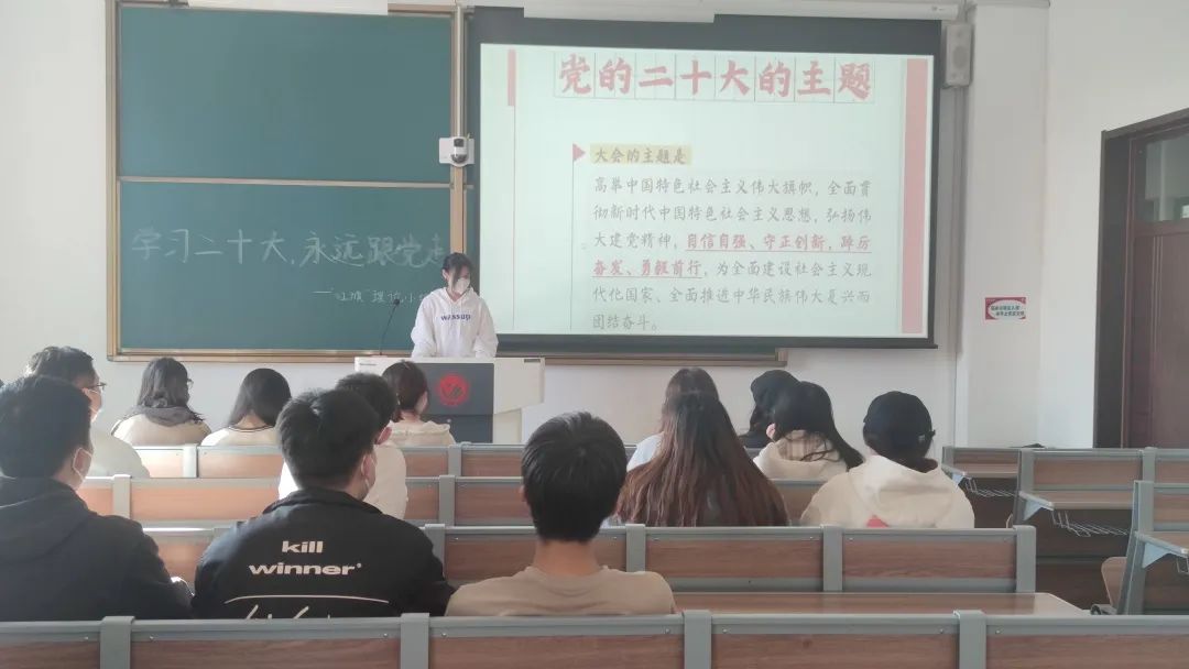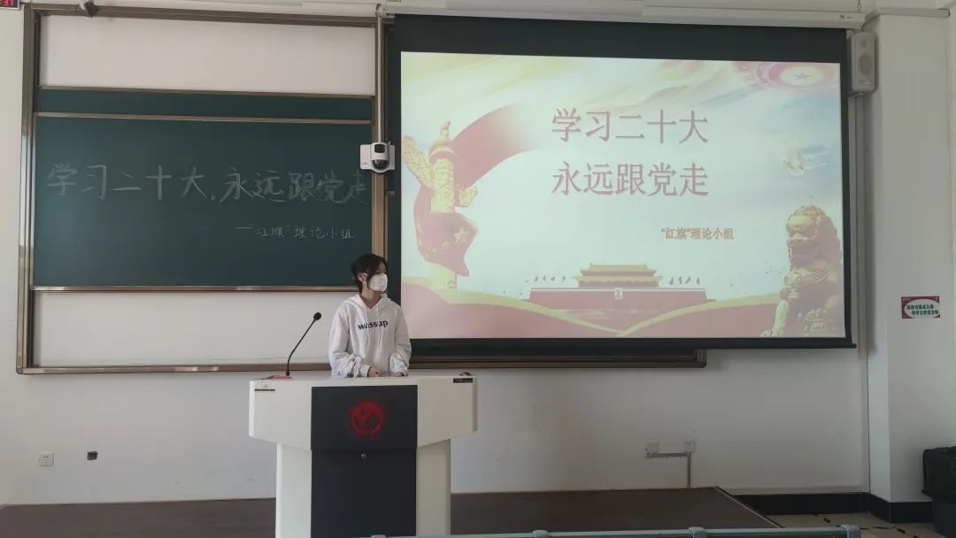 组织理论学习社团于2022年10月25日13点在主楼128开展了专题学习会。会议由学院”红旗”理论小组组长邹晶洋同学主持,并带领小组全体成员们开展了理论学习活动。