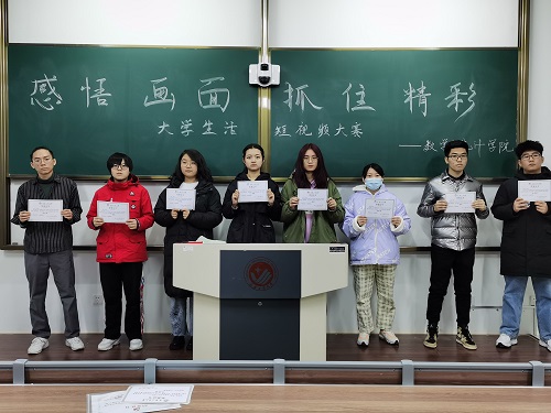 大学时光是人生中最值得珍惜的一段岁月。记录校园生活的美好瞬间,留住不经意发现的美丽风景,让变换的色彩留下可回忆的足迹。本次活动分为三个阶段:宣传征集、作品筛选及作品展示。参赛选手录制并剪辑自己的视频作品并提交至负责人处,负责人将符合标准的作品放置学院公众号进行展示,由我院全体同学进行投票评比。在比赛中选手们展示出了多姿多彩的校园生活,经过激烈的角逐,刘耀文、李丹荣获一等奖,钱雨佳、刘慧莹、张叶、王晨获二等奖,张文文、朱爱成、简雨芯等十名同学获优秀奖。