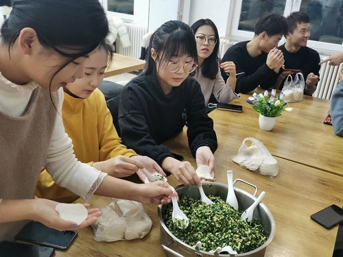 此活动得到了学校食堂的大力支持及餐饮工作人员们热心帮助。联欢第一项活动就是包饺子,同学们围坐在桌前,分工合作,包出各具特色的饺子。活动现场充满欢声笑语,气氛和谐融洽。几名学生被面粉摸花了脸,引得同学们捧腹大笑,形态各异的饺子更体现出了天南地北的同学风俗习惯。活动现场洋溢着青春的活力和团结合作的和谐氛围。期间郑老师也参与到包饺子的活动中,并为每桌同学包了饺子,以示送上最亲切的关怀和祝福。在同学们的团结协作、不懈努力之下,一碗碗热气腾腾的饺子在同学们的期待中端上了餐桌,同学们吃着香喷喷的饺子,李星晰等人还为同学们唱歌助兴,将活动现场热烈的氛围推向高潮。感受着绅士漫画
