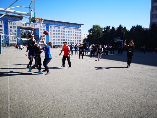 于林园校区篮球场成功举行大一大二篮球联谊赛,团委书记郑岩老师亲临比赛现场。