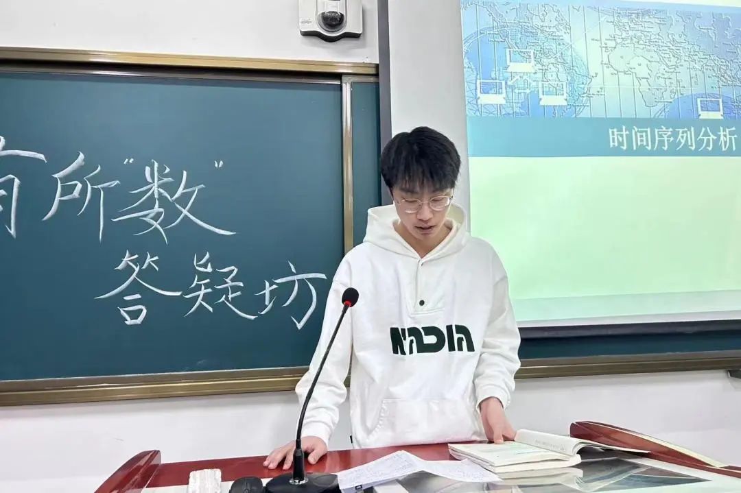在主楼224教室举办了第三期“心有所‘数’”答疑坊活动。通过前两期活动,志愿者们积极探索,创新活动形式。通过前期调研同学们感兴趣的方向,本次活动采取小课堂的形式,由2021级的学生林利桁为学弟学妹们进行“时间序列分析”这门科目的讲解。