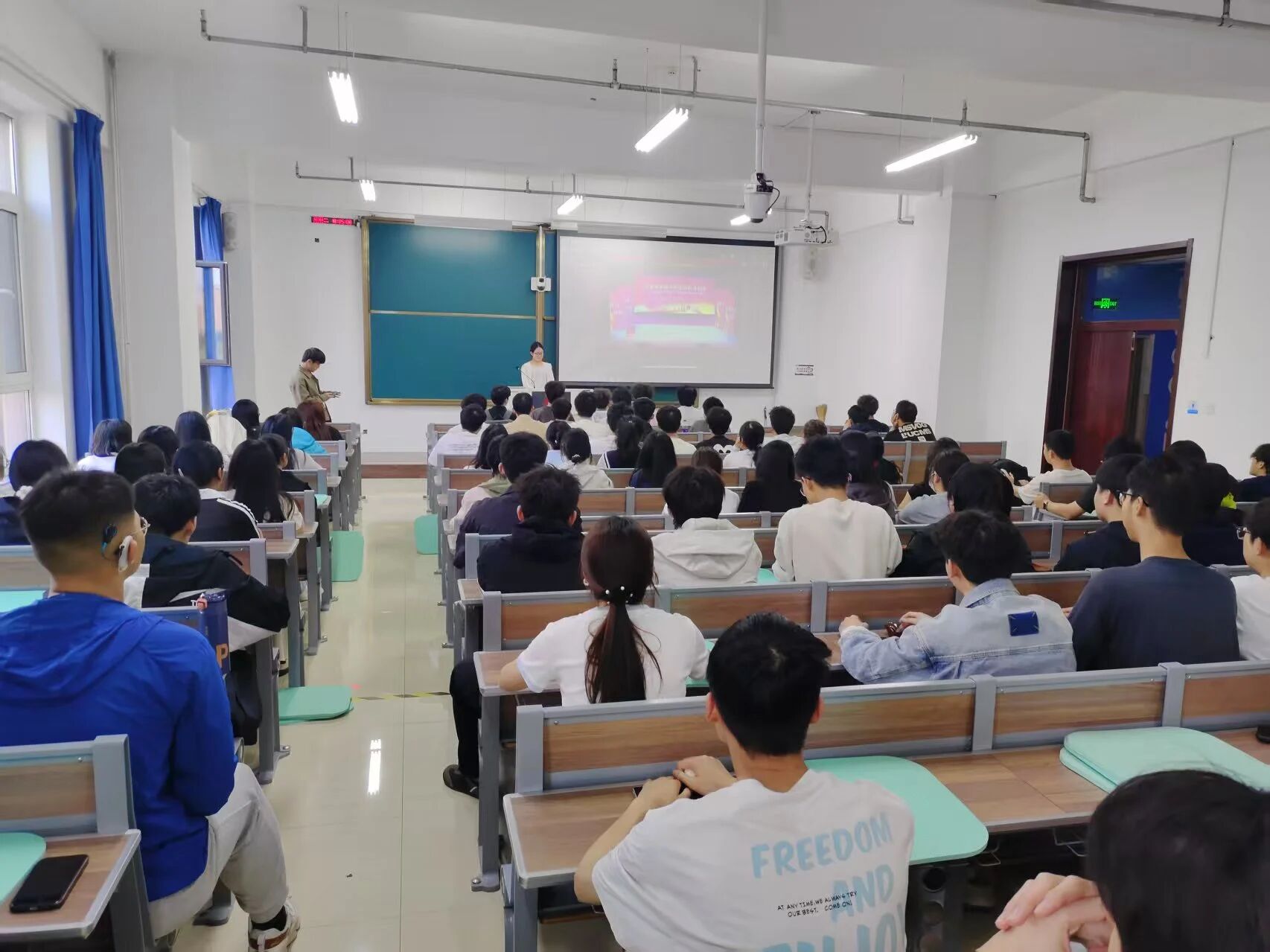 于2025年5月27日在主楼454教室组织学生观看了“青春为中国式现代化挺膺担当”2025年度中国青年五四奖章暨新时代青年先锋奖主题宣讲报告会。引导青年学子以优秀青年为榜样,汲取奋进力量。对此,同学们感触颇深: