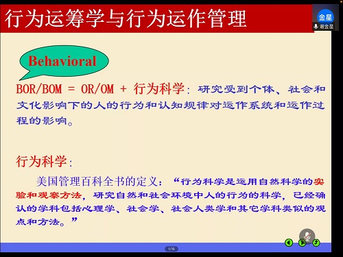 于2020年12月16日邀请了清华大学谢金星教授的“行为运筹学建模:以稀缺产品的分配机制为例”为主题的线上报告。会议由副院长李纯净主持,参加线上报告的有院长王纯杰,副院长刘铭,线性代数教学部主任谭佳伟等,还有大一大二全体学生参加。