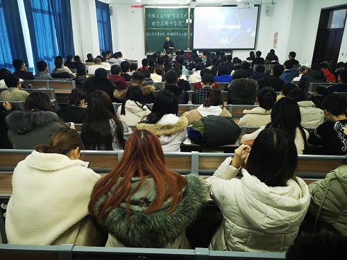 于2019年12月4日在北湖东区教学主楼446教室和452教室,分别举办了两场专业教师指导学业报告会,报告会由应用数学系主任刘铭,统计系主任李纯净主讲,2017届,2018届和2019届全体学生参加本次报告会。