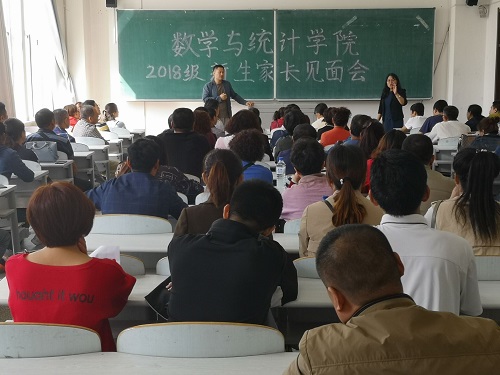 出席见面会的学院党政领导有院党委书记朱宏伟、院长王纯杰、党委副书记王丹、副院长张海燕。见面会由2018级新生辅导员老师郑岩主持,见面会上,由学院王纯杰院长为各位家长详细介绍了学院的发展情况,特别是我院的统计学一级学科博士学位授权点的申报建设与成功历程,在专业领域科研、自然科学基金申报情况以及在全省、全国级别的学术学科竞赛中学院取得的各项殊荣与成绩。学院骄人的教学与科研成果使得家长们对孩子在学校的学习更加放心与支持。王院长也表示学院的教育工作与学生的成长成才离不开学生父母的交流与沟通,家长的支持能够最大程度地鼓励孩子们的学习,对学院建设有序发展的学习环境与学习风气起到了重要的辅助作用。在家长咨询环节中,王院长和郑老师耐心细致的回答了家长们对于学生在生活、学习、考研和毕业去向等各方面的问题。