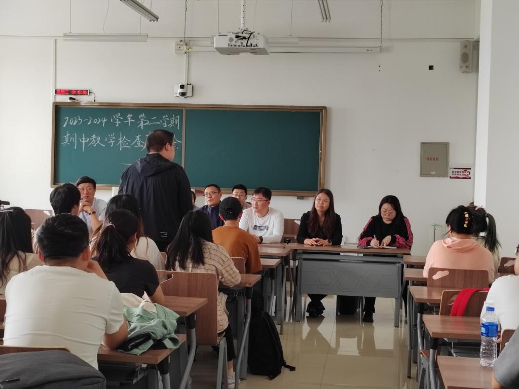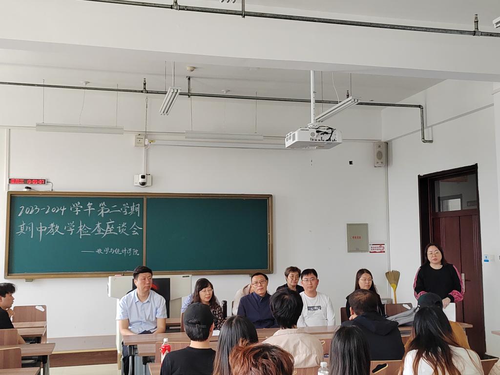 于2024年5月22日下午1点在北湖校区主楼450教室举行了期中教学检查座谈会,有大一至大三各班学生代表、各教师代表参加。