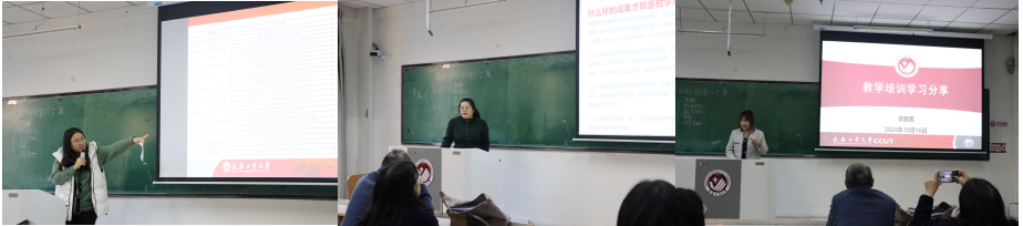 在会议的最后,我院屈红雁、黎海彤、李鹏南老师分别进行了教师培训及智慧互动答题竞赛学院参赛的总结与分享。详细介绍了竞赛的流程、准备过程、准备材料、奖项申报流程等,三位老师的分享激励了在座的每一位教师,让大家感受到教育工作者共同成长、携手并进的重要性。