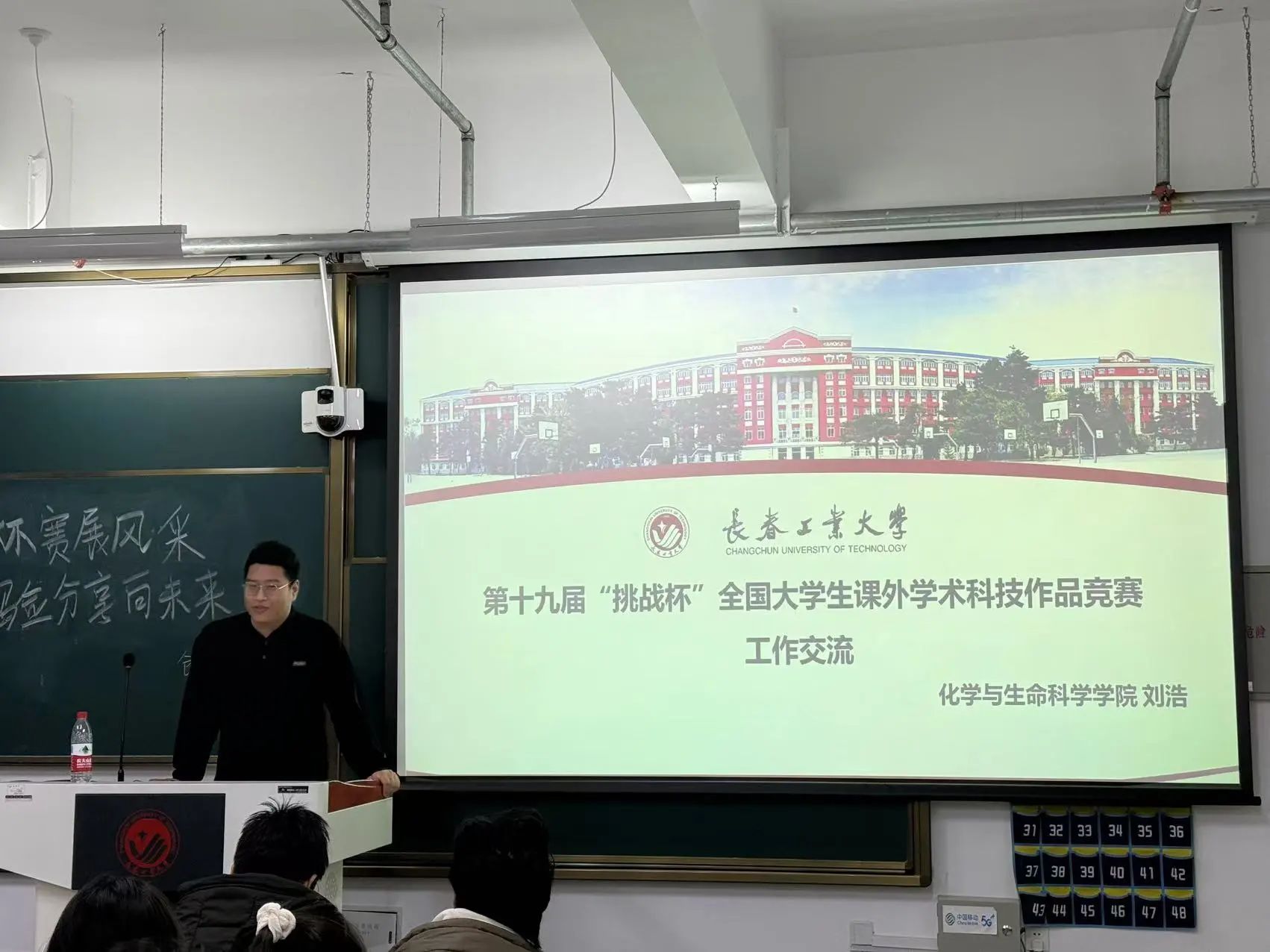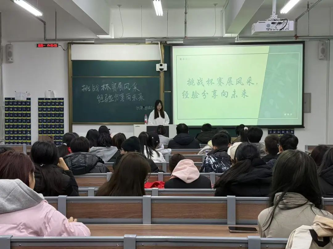 于2024年12月9日下午六点在北湖东区主教学楼201教室开展了“挑战杯”竞赛赛前经验交流分享会,特别邀请挑战杯第十八届全国大学生课外学术科技作品竞赛二等奖团队负责人刘浩,2024年挑战杯吉林省大学生创业计划竞赛金奖团队负责人曹馨月为大家做经验分享交流。
