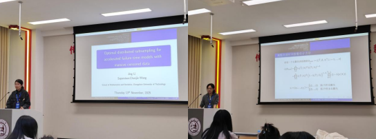 接下来的博士生论坛,共分为三个模块,分别为“复杂生存数据研究进展”、“现代机器学习方法进展”以及“复杂相依数据建模与推断”。东北师范大学王晴博士、吉林大学王淳博士以及我院林珊屹、赵一伟、李晶等博士研究生分别做学术报告,与参会教师和学生分享自己的科研成果,并和大家进行热烈的学术交流与讨论。