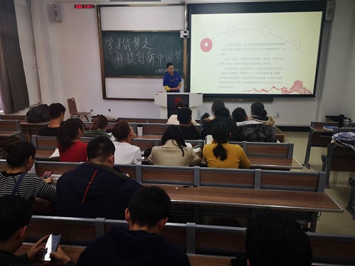 团委于11月28日在教学主楼开展“学习筑梦”系列活动之“科技创新中国梦”,2018级和2019级各班级团支部的学生团干部参加了此次活动,180801班团支部闫新洋主持本次会议。