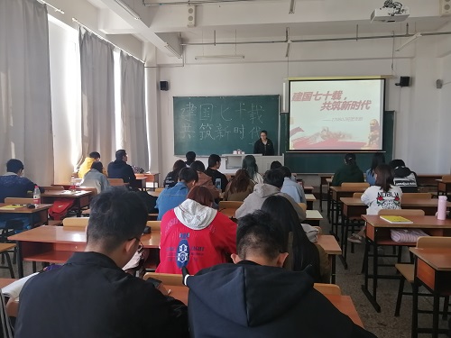 各团支部开展“学习筑梦”系列活动之“建国七十载,共筑新时代”。活动于2019年9月20日在教图楼举行,19级、18级、17级全体团员参加本次活动。