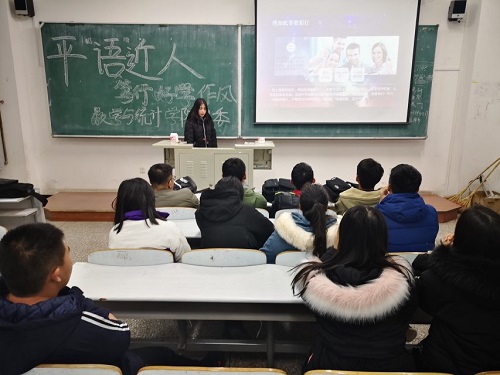 团委于2018年12月3日晚7:40在教图楼503教室开展“学习筑梦”系列活动之《平“语”近人》之“笃行、好学、作风”。学院2018级全体学团干部参加本次会议,此次会议由院团委组织部副部长林思扬主讲。