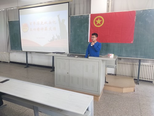 活动伊始,虎佳尧给同学们播放了一段讲述中国在历史发展中遭受屈辱并奋起反抗的纪录片。纪录片深刻地展示了青年学生在国难面前爱国、进步、民主、科学的五四精神。在危难面前,清政府以及北洋政府面对西方列强的侵略选择了沉默,正如鲁迅先生所言:“沉默呵,沉默呵,不在沉默中爆发,就在沉默中灭亡。”一大批青年学生和知识分子在这个时刻没有选择做沉默的大多数,而是高呼着“外争国权,内惩国贼”的口号开展了轰轰烈烈的五四运动,在欺辱与挫折面前挺身而出,不畏艰险,勇往直前。这也标志着中国新民主主义革命的开端。追忆过往,同学们更应当展望未来,传承五四精神,努力成长为社会主义合格建设者和接班人。